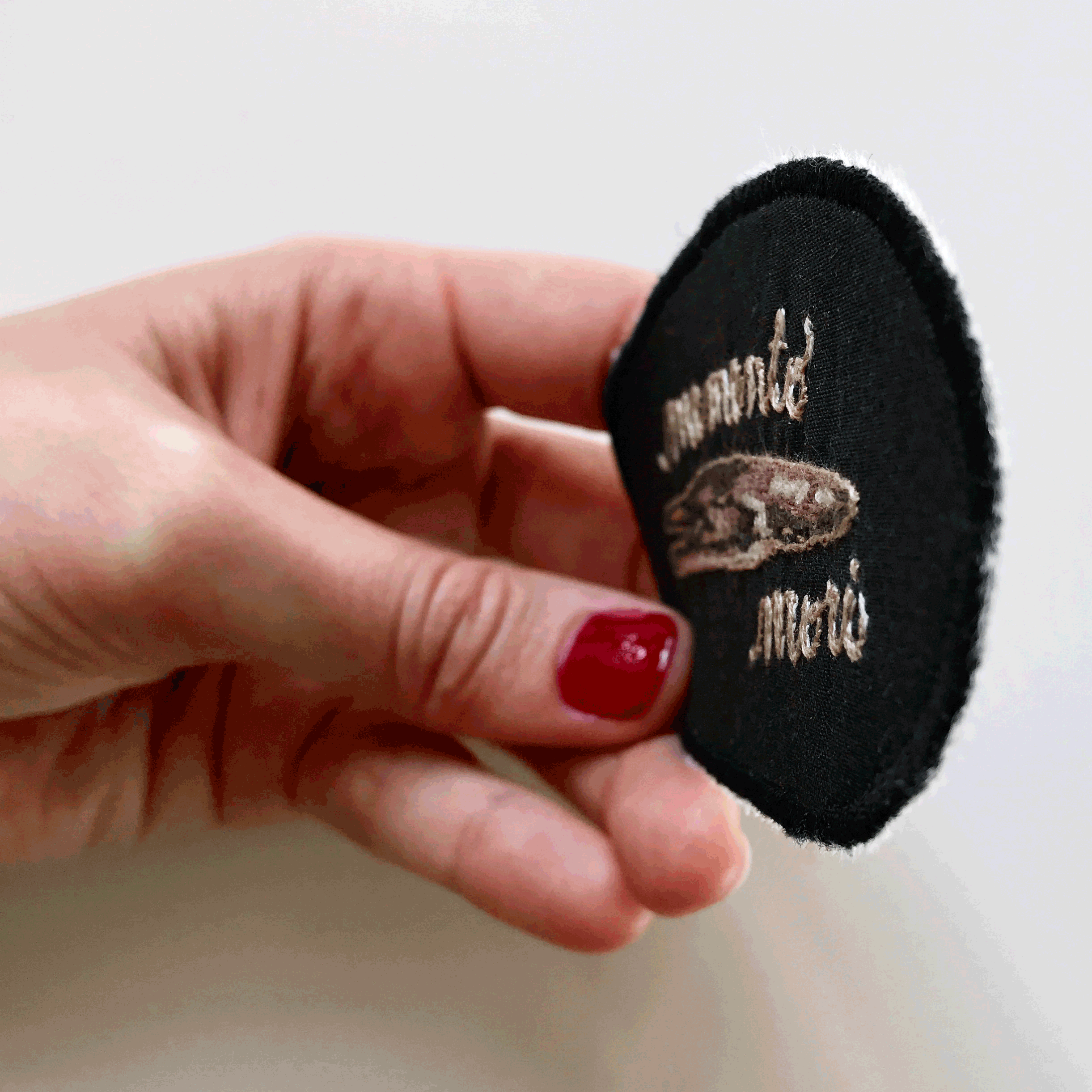 I was asked by Anya Ferring to embroider the ARTbutt logo on a custom pair of panties. I had a lot of fun with this, as it’s brighter and I got to improvise more with my stitching than I normally do. The idea was to have colors and stitches that would stand out in an editorial photo on the relatively small canvas of women’s underwear.